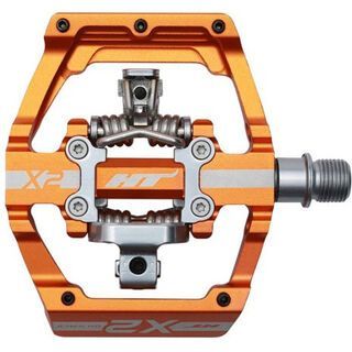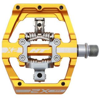 Die HT Components X2 aus der DH Race Serie – Aaron Gwin & Amaury Pierron World Cup Champion geprüfte Plattformpedal Hybrid Pedale mit CNC gefrästem Aluminium Pedalkörper und CNC gefräster Cromoly-Achse.