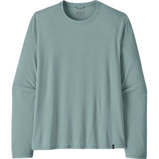 Das Patagonia Women's Long-Sleeved Cap Cool Merino Blend Graphic Shirt – ein atmungsaktives, technisches Top aus einem Merinowolle-Gemisch, das temperaturausgleichend wirkt, Geruchsentwicklung hemmt und für harte Einsätze ein breites Komfort-Spektrum bietet. Hergestellt mit Responsible Wool Standard (RWS) Wolle, zertifiziert von der Control Union (TE-00052557); Patagonia mischt die RWS Wolle mit 35 % Recycling-Polyester für Vielseitigkeit und Funktionalität. Wer RWS-zertifizierte Produkte kauft, zeigt damit sein Engagement für bessere Tierschutzpraktiken und Nachhaltigkeit in der Wollerzeugung. Hergestellt in einem Fair Trade Certified™-Betrieb.