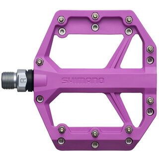 Die GR400 Pedale von Shimano sind griffige Flachpedale mit einer zum Trailfahren optimierten Aufstandsfläche, die sich stabil und sicher unter dem Fuß anfühlt. In Kombination mit den Schuhen der Shimano GF Serie bieten sie eine erstklassige Kontrolle über das Bike.