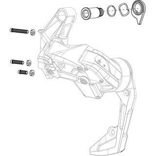 Das SRAM Schaltwerk B-Bolt / B-Screw / Limit Screws – Bolzen und Schrauben zur Befestigung deines SRAM Rival eTap AXS Schaltwerk (RD-RIV-E-D1), inklusive der Begrenzungsschrauben.